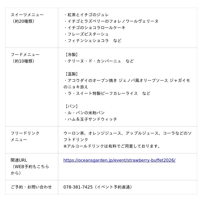 ラ・スイート神戸オーシャンズガーデンとラ・テラスホール神戸(所在地:神戸市中央区)は2026年1月から4月まで「STRAWBERRY RED BUFFET 2026~きらめくイチゴとショコラの誘惑~」を開催いたします。