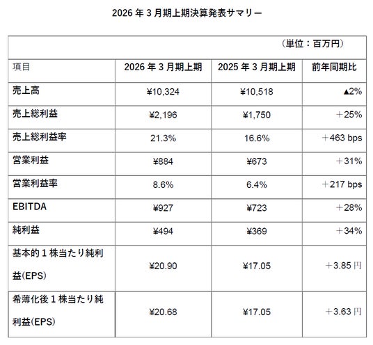 ■2026年3月期上期(前年同期比)の主なハイライト: