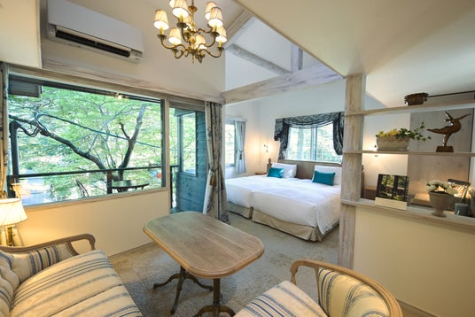 2025年8月にリニューアルオープンした宿泊棟はフランス・ボルドー地方のオーベルジュがコンセプト。パリの静かなアトリエやボルドー地方のブドウ畑を思わせる贅沢な空間づくりを目指しました。現地の20世紀初頭から中ごろのアンティーク照明、フランスのカーテンやリネン、20世紀を代表するアートを各所に設えました。