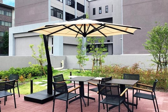 デザイン性と耐風性能で評価をいただいている大型パラソル「ステラ」に、移動可能なタイプが加わりました。