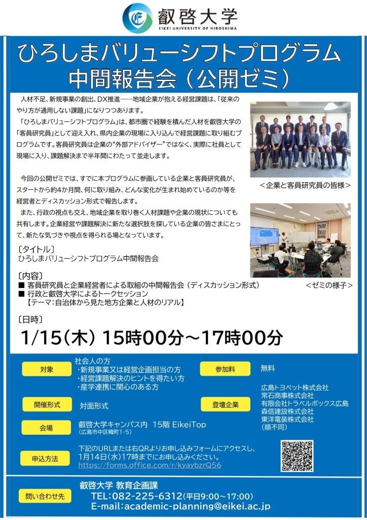 【参加者募集】ひろしまバリューシフトプログラム中間報告会(公開ゼミ) - 【公式サイト】広島県公立大学法人 叡啓大学