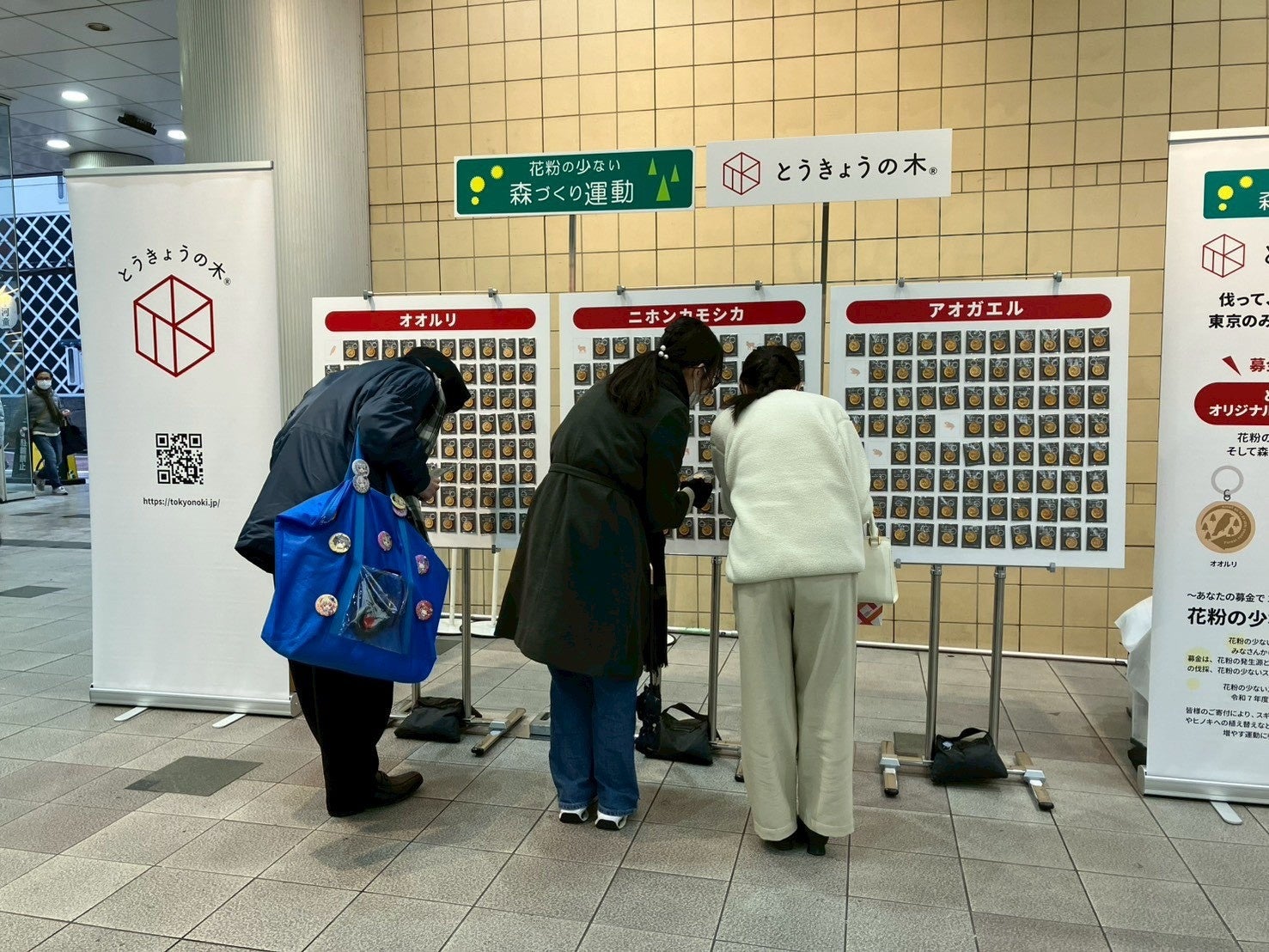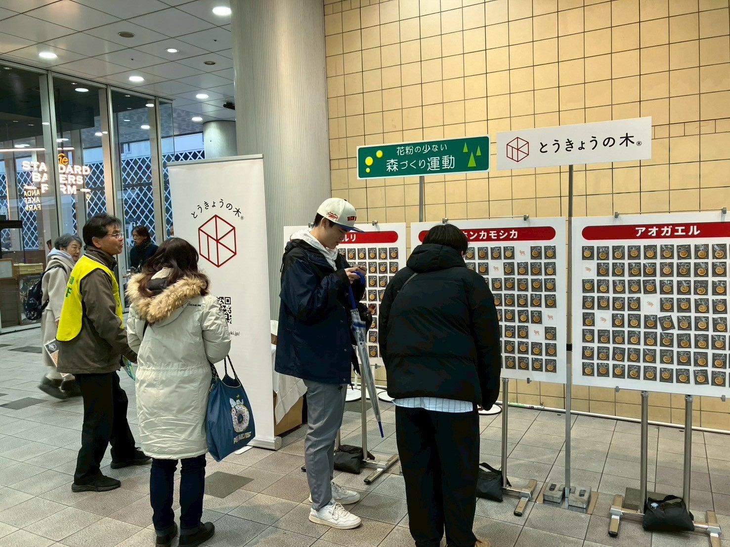 花粉の少ない森づくり運動は、花粉を多く飛散させるスギ・ヒノキの人工林を伐採し、花粉の少ないスギなどに植え替える活動で、森林の健全化に役立っています。また、とうきょうの木(R) は、多摩地域の森林循環を健全に保つため、都民のみなさんに東京の木多摩産材を選んで使っていただくことを呼びかけるエシカルブランドです。 共通の目的である「多摩地域の森林循環の健全化」のために、2つの活動を都民のみなさんへアピールしました。
