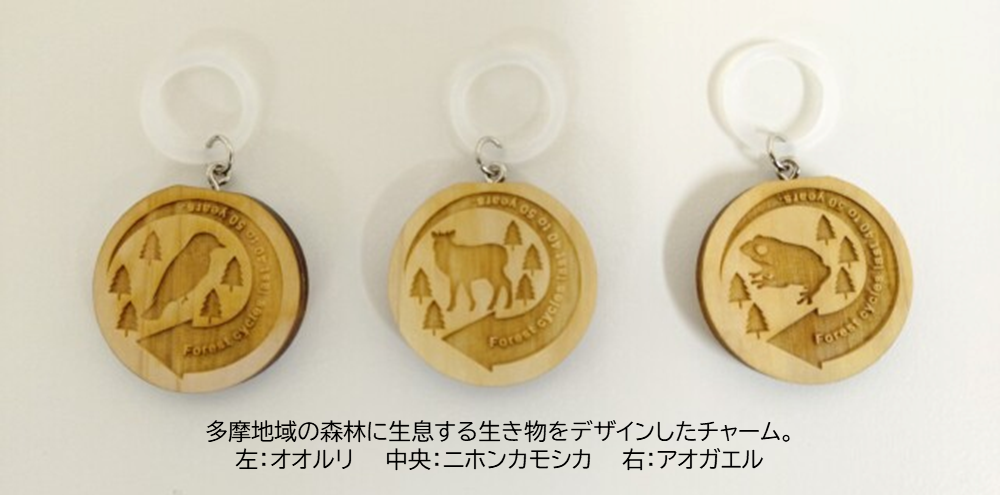 今年の8月から「とうきょうの木(R) ブランドをつくろう!プロジェクト」には、高校生・専門学校生・大学生が参加し、未来へつながる森林循環をイメージして、とうきょうの木(R) をアピールするチャームのデザインをしました。花粉の少ない森づくり募金にご協力いただいた方に、このチャームをプレゼントすることで、とうきょうの木(R) の存在を知っていただくきっかけになり、森への経済的な流れも実現しました。