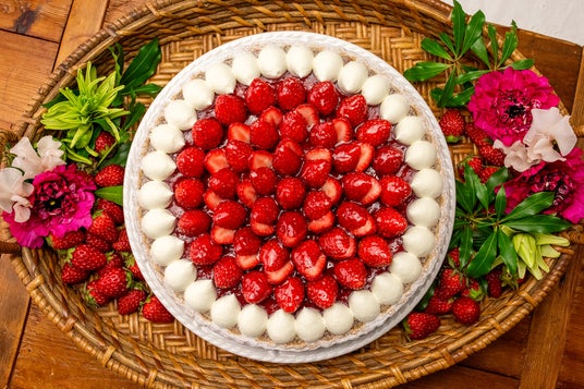 甘酸っぱいイチゴをクリーミーで香ばしいアーモンドのババロアと濃厚な味わいのホワイトガナッシュと組み合わせた、風味豊かなタルトです。繊細で華やかな花束のようなデコレーションは贈りものにもぴったりです。