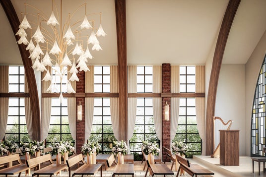 天井から自然光がたっぷりと降り注ぎ、窓からは緑が望めるチャペルをご用意しております。