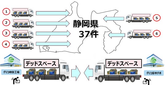 具体的には、Glicoが商品をサンライズグランドフーズに納品し、同じ拠点の物流倉庫をハブにした物流網でGlicoの商品と他社商品を混載し、共同配送しました。これにより、Glicoの輸配送車両の台数を減らし、サンライズグランドフーズの共同配送の輸送効率を高めました。