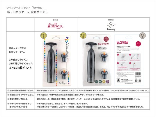 ワインツールブランド「funvino」 新・旧パッケージ 変更ポイント