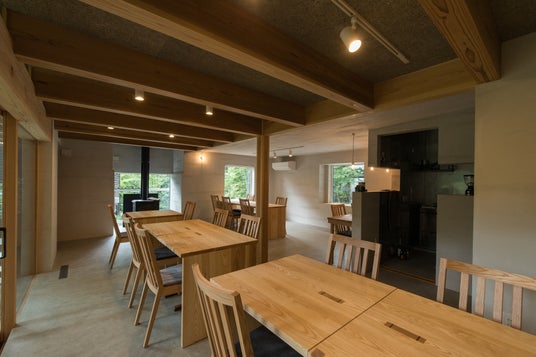 屋内と屋外を分断せず、「中にいても外を感じられる」空間構成としています。