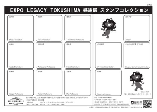 関西パビリオンスタンプのほか、“ヨルダンパビリオン”、“いのちの遊び場クラゲ館”のス