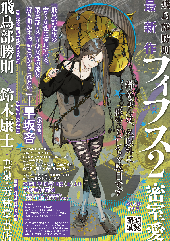 著者・飛鳥部勝則氏、装画・イラスト担当の鈴木康士氏の協力のもと、本文、表紙イラスト、ロゴなど“本物の素材”を使用し、リアルな出版・書店ビジネスに挑む取り組みです。
