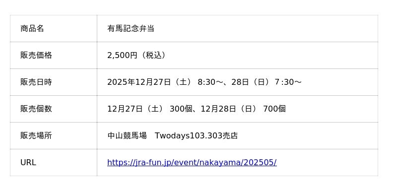 ■有馬記念弁当第70回の節目でもある有馬記念を祝し、今回のお弁当は豪華且つボリュームにこだわりました。牛肉煮をメインに、赤魚西京焼、軟骨入り鶏つくねなど、様々な食材をお楽しみいただけます。