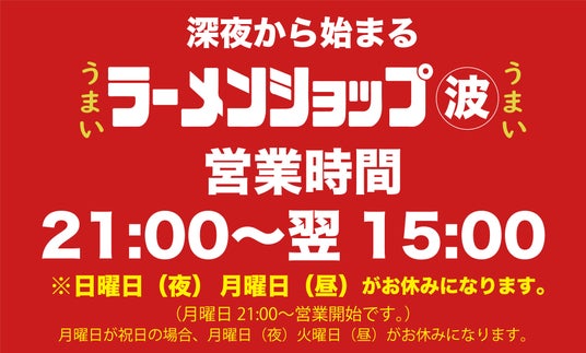 開店から約2ヶ月経った12月9日から営業時間は21:00~翌15:00までの18時間に変更。飲み会終わりの“最後の一杯”から、出勤前や一日の始まりに立ち寄れる“最初の一杯”まで、時間帯を問わず「この時間に食べてよかった」と思える一杯の提供を目指します。6:00~10:00限定で、通常よりお得に楽しめる“朝ラーメン”もご用意。さらに、12月31日から1月1日にかけては年末年始ならではの「年越しラーメン」も提供します。