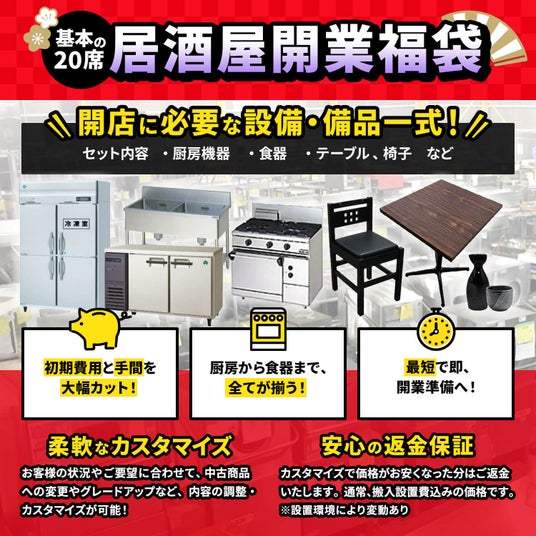 中古厨房機器販売最大手としての調達力を活かし、「お店丸ごと一式」を福袋に詰め込むという大胆な発想で、業界を驚かせる価格と利便性を提供します。