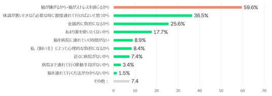 また、定期受診していない人の59.6%は、“動物病院に行かない理由”に「猫のストレス」を選択