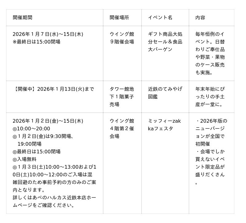 【あべのハルカス近鉄本店】2026年1月のイベント情報