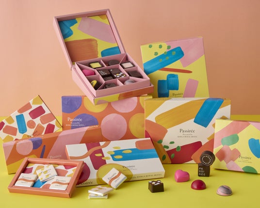フランス語の「passer(手渡す)」と「sourire(笑顔)」が響き合ったブランド名『Passiree(パッシレ)』には、たいせつな人にも自分にも、ピュアな想いをそっと解き放ち、贈る瞬間に笑顔を紡ぐとっておきの時間を届けたいという思いを込めました。水彩が躍るパッケージはリーガロイヤルホテルらしい気品をイメージさせるようなデザインに仕上がり、軽やかでポップな遊び心が息づいています。
