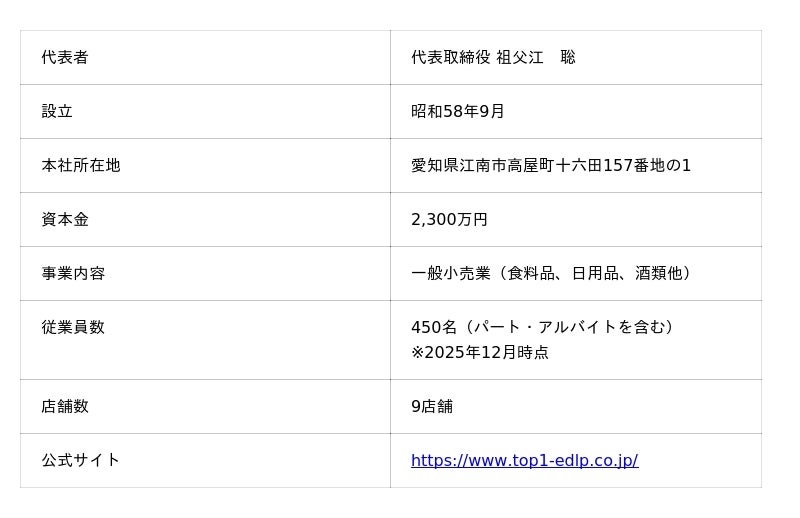トップワンは、1983年の創業以来、地域のくらしを豊かにすることを目指して事業を展開してきました。雑貨を中心としたディスカウントストアからスタートし、食品事業を加えたのち、現在では食品をメインとする業態へと進化しています。経営理念「消費者ニーズにあった良い品をより安く」を軸に、生鮮食品や加工食品、日用雑貨など生活に欠かせない商品を幅広く取り扱い、地域のお客様にとって最良のパートナーとなる店舗づくりを追求してきました。また、「夢のある売場」を目指し、買い物が楽しく豊かな時間となるよう工夫を重ねています。さらに、人財の活躍にも力を入れ、一人ひとりの個性を生かした事業運営を推進しています。