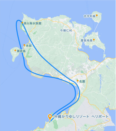 美ら海水族館、かりゆしビーチ、古宇利島をはじめとする沖縄有数の観光地を空からめぐることができるヘリコプタークルージングプランを販売いたします。