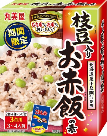 のよい枝豆を組み合わせた、見た目も華やかなお赤飯の素です。