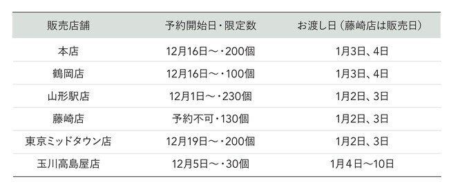 ※藤崎店は予約不可、販売日店頭にて先着順で販売します。