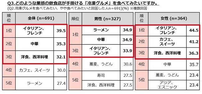 ・冷凍グルメを食べてみたい業態は「イタリアン、フレンチ」「中華」「洋食、西洋料理」がTOP3