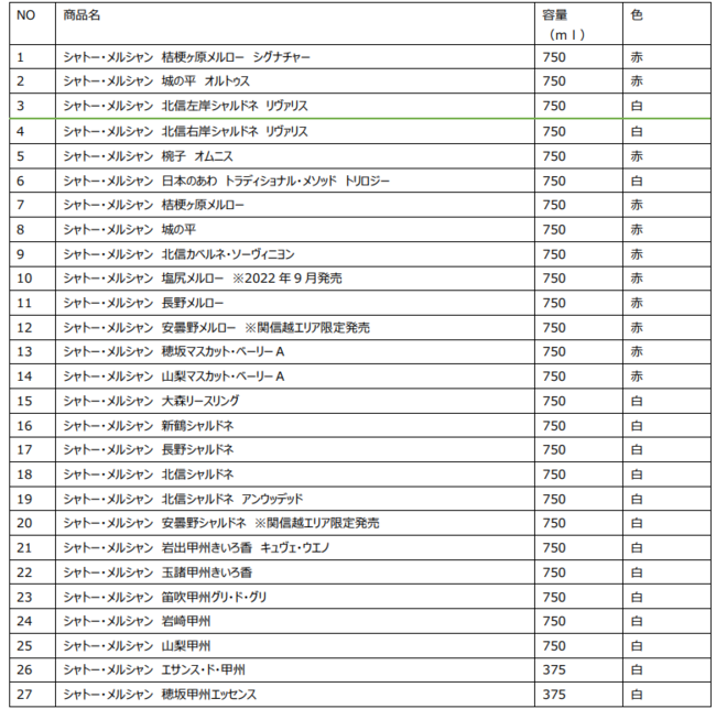 5.対象商品 上記期間にメルシャンより出荷されたメルシャンの日本ワイン