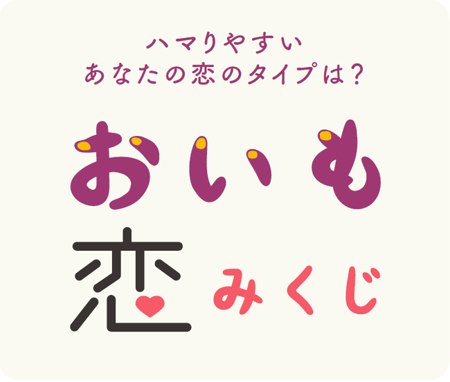 やさしさに惹かれたり、ギャップにドキドキしたり。恋に落ちる気持ちを表現した、おいも恋みくじにトライ!なんとこの恋みくじ、会場では先着3,000名さまに無料で楽しんでいただけます。メッセージにそって、おすすめのおいもスイーツも案内しますので、引き当てたものは運命だと思って食べてみましょう!