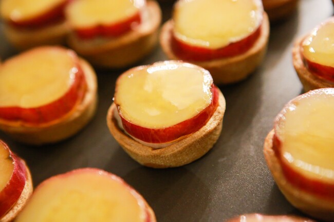 使っているのは、ホクホクで甘い“なると金時”。さっくりと焼き上げたタルトの中にはおいも餡を入れ、上にはコンポートしたおいもをのせて。2つの食感やおいしさが楽しめます。