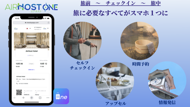 「AirHost ONE」は、旅前から、旅中・旅後まで効果的に旅行者にアプローチができる宿泊者向けアプリ(Webブラウザ, iOS, Android 対応)です。