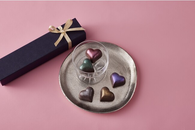 ハート形のパウンドケーキのデコレーションが目を引く「ショコラアムール」のベースは、しっとりとした口当たりのチョコレートパウンドケーキ。かつて銀座店で大人気を博した限定商品をバレンタインバージョンに仕立て変えた、華やかで大人可愛い逸品です。