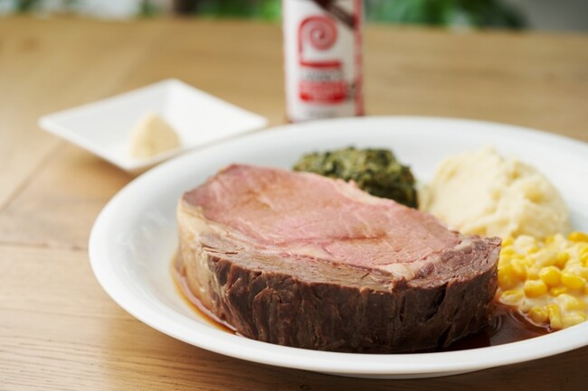 プライムリブはCAB認定アンガスビーフを低温でローストして旨みを凝縮させた逸品です。添えられたオ・ジュソースやホースラディッシュ、「ロウリーズ・シーズンド・ソルト」を付けてお楽しみください。セットのアカンパニメンツ3種はマッシュドポテトとクリームドスピナッチ、クリームドコーンです。いずれもお店と同じレシピで作られており、クリーミーで滑らかな味わいを楽しめます。