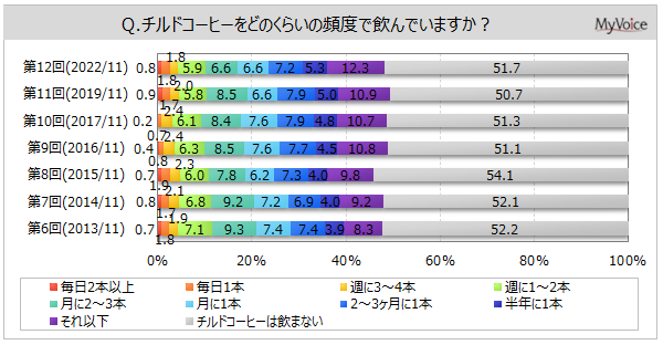 マイボイスコム株式会社(東京都千代田区、代表取締役社長:高井和久)は、12回目となる『チルドコーヒーの飲用』に関するインターネット調査を2022年11月1日~5日に実施しました。調査結果をお知らせします。