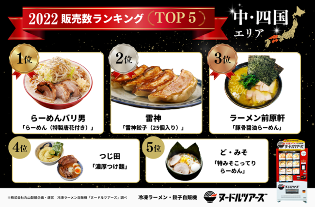 調査テーマ:全国・エリア別 冷凍ラーメン自販機「ヌードルツアーズ」2022年販売数ランキング