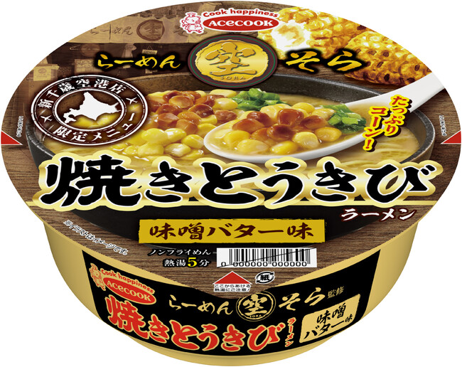 1. 札幌みそラーメンの名店「らーめん空」の新千歳空港の店舗で提供している限定メニュー「焼きとうきびラーメン」をカップめん化!
