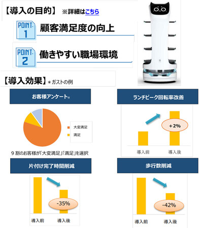 導入にあたり、ロボット専任インストラクターが全店舗に出向き、お客様・従業員の声をもとにした改善活動を重ね、人とロボットが協働するサービス開発に力を入れております。すかいらーくグループは、引き続き、中長期にわたる成長を 目指し、ITデジタルを活用した顧客満足度の向上や従業員の働きやすい環境整備に積極的に取り組んでまいります。