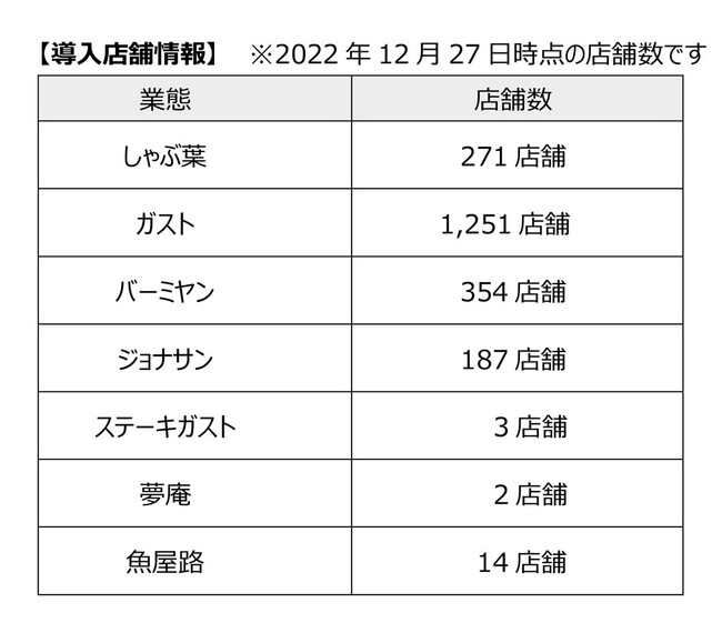 株式会社すかいらーくホールディングス(本社・東京都武蔵野市、代表取締役会長兼社長・谷 真、東証プライム:証券コード3197)は、2021年8月より、フロアサービスロボットの導入をスタートし、2022年12月27日に 「ガスト」「しゃぶ葉」「バーミヤン」をはじめとする全国約2,100店舗に3,000台のロボットの導入を完了いたします。