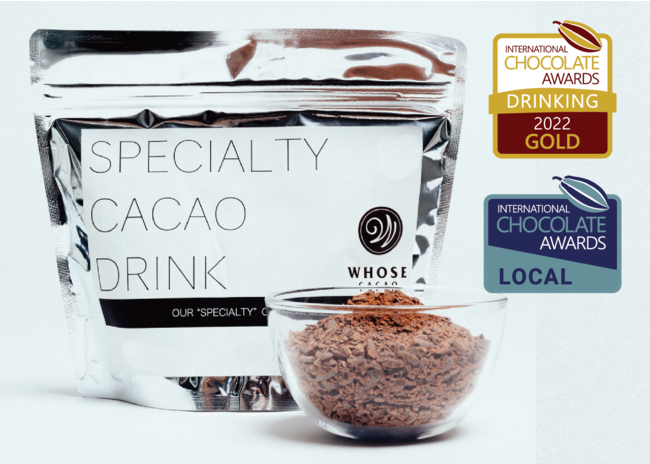 WHOSE CACAOでは2020年、International Chocolate Awards 2020 世界大会ドリンク部門にて「SPECIALTY CACAO DRINK」が銀賞、2022年のアジア・パシフィック大会原料部門では「ナチュラルココアパウダー」がココアパウダーとして最高得点(86.8点)で銀賞を受賞。今回、本世界大会のドリンク部門にて「Yuzusansho(ゆず山椒)」が最高得点(90.2)を獲得し、最優秀賞、金賞、ローカル賞の三冠を受賞いたしました。また同コンペティション世界大会にて、当社のインドネシア産ナチュラルココアパウダーはブロンズ銅賞を受賞いたしました。