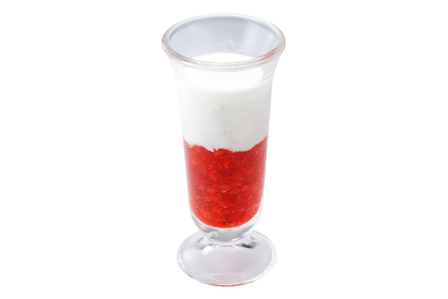 フレッシュな完熟イチゴを原料に、果肉のつぶつぶ食感を残したイチゴソースを使用。牛乳はイチゴソースとの相性を考え、生クリームを加えたオリジナルです。