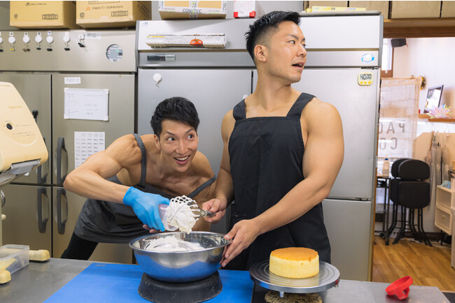 「使う用途ないけど面白い」とSNSやメディアで話題のマッチョのフリー素材・ストックフォトサイト「マッスルプラス」。街のケーキ屋さんでケーキを作るパティシエやケーキマをおすすめするスタッフのマッチョたちのフリー素材を撮影しました。