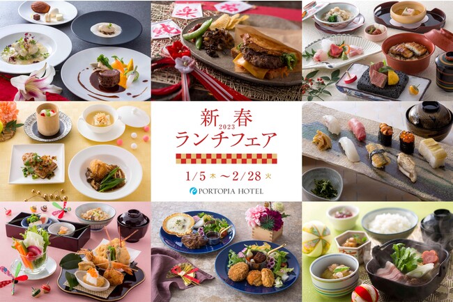神戸ポートピアホテル(神戸市中央区、総支配人 伊藤 剛)は、2023年1月5日(木)から2月28日(火)の期間、「2023新春ランチフェア」を開催いたします。日ごろのご愛顧への感謝の気持ちを込めて、館内レストラン8店舗にて、ホテルシェフが価格・味ともにスペシャルなメニューをご用意いたしました。3,800円、2,800円、1,900円という大変お値打ち価格でホテルレストランにてランチメニューをお召しあがりいただけます。