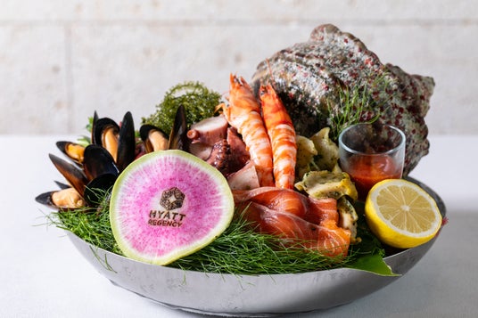 オールデイダイニング「セラーレ」のセラーレグリルでは、ブランド肉を沖縄県初となる900°Cの高温ブロイラーでダイナミックに焼き上げる最高級ランクの極上ステーキが人気です。また車海老、島ダコ、夜光貝、海ぶどうなどの地元食材を中心に、世界各地から厳選したムール貝や自家製サーモンマリネを豪快に盛り合わせた、1日5食限定の「シーフードプラッター」もご用意しています。