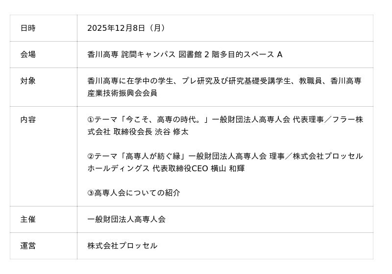 そこでこの度、香川高等専門学校で開催される「高専人会キャリア講演」にて代表の横山が登壇いたしました。