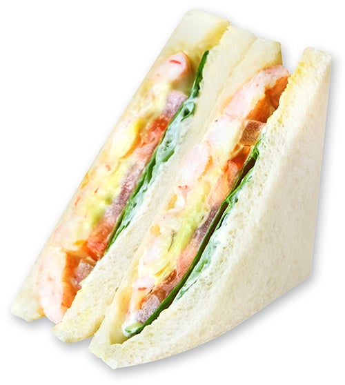 迎春ぷりぷり海老のタルタルサンド 821円(税込)新年のお祝いにふさわしい“ごちそう感”をテーマに開発した、迎春惣菜サンド。ぷりっとした食感が特長のサラダエビを主役に、シャキシャキのレタス、コクのあるアボカドフィリングを重ね、たっぷりの特製タルタルソースで味付けしました。