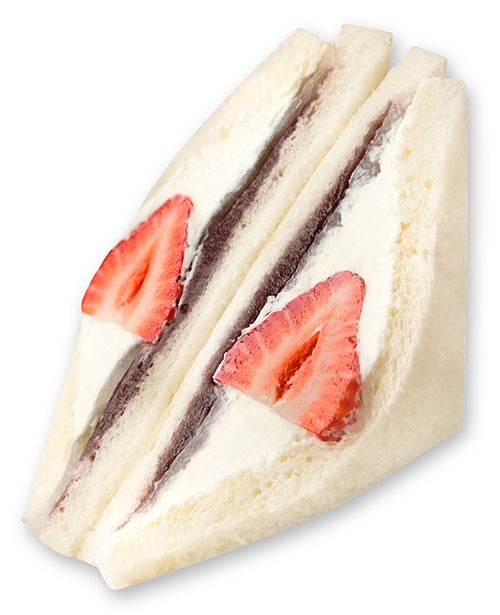 いちご大福サンド 670円(税込)和菓子の定番「いちご大福」をパンで表現した、迎春シーズのスイーツサンドです。みずみずしいいちごに、軽やかな生クリーム、なめらかなこしあん、やわらかな求肥を組み合わせ、和と洋が調和する上品な甘さに仕上げました。