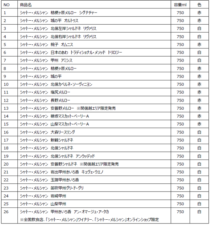 ※対象商品には、上記以外にもワイナリー・EC限定販売品なども含みます。