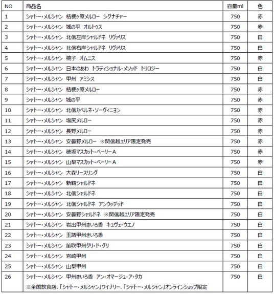 5.対象商品 上記期間に当社より出荷したメルシャンの日本ワイン(「シャトー・メルシャン」「日本のあわ」他)約50品