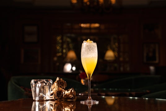 金箔の輝き、流麗な文様、そして人物が織りなす繊細な世界――クリムトの美学を一杯のグラスに閉じ込めた至高のアートカクテルを、展覧会で出会える「アデーレ・ブロッホ=バウアーの肖像I」を用いたオリジナルコースターとともにご提供いたします。