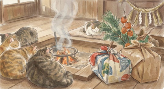 冬の醍醐味、こたつと猫のぬくもり。お馴染み様への感謝を込めて準備された「先行お披露目福袋」とともに。