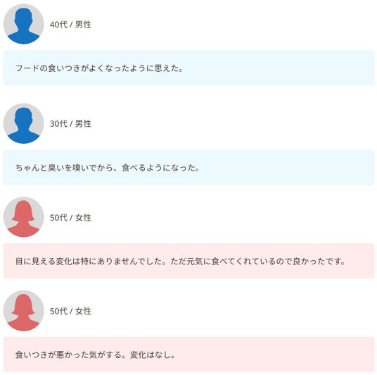 「目元がきれいになった」「毛並みが整った」など、確かな手ごたえを感じる声も相次ぎました。