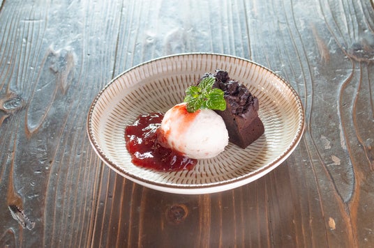 いちごの練乳アイスとガトーショコラ いちごジャムがけ¥1300|「笠庵」賛否両論